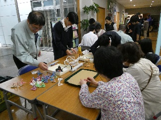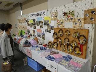 展示コーナーには各種団体やグループ、個人の作品(生け花、手芸、絵画、書道、絵手紙など)をたくさん飾ることができました。体験コーナーでは、ものづくりに初めて挑戦する人も多く見られ慣れない手つきながらも、完成品を目指して楽しそうに作業する姿が見られました。