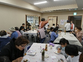 会場内には、休憩スペース(喫茶室、お茶会)と食べ物の模擬店が設けられ、来場者がくつろぎながら交流する姿が見られました。