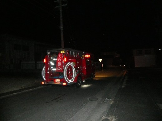 夜警活動お疲れ様です。引き続き、安全運転でよろしくお願いいたします。今月末には「地域の安全を学ぶ」を目的に小学生の、夜警同乗体験を予定しているそうです。元気な「火の用心」を楽しみにしています。